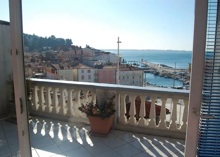 1-slaapkamer Bellavista Pirano Appartement appartementen zijn ook op circa 750 meter afstand van de Sint-Joriskerk gesitueerd. Het appartement van 50 m^2 heeft een zonneterras met uitzicht op de zee